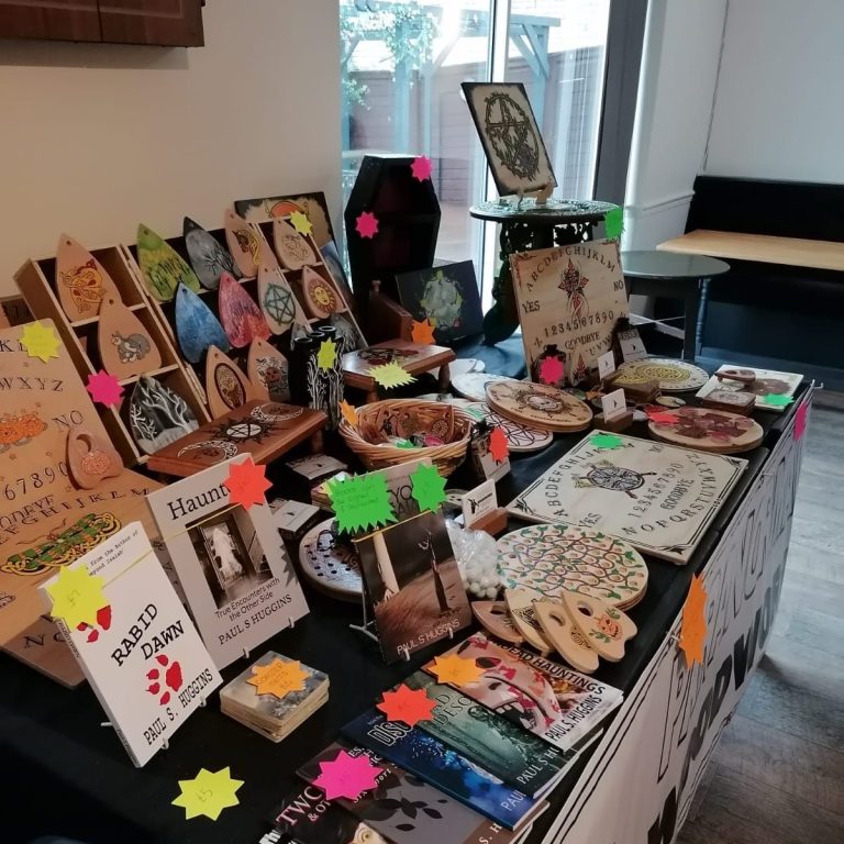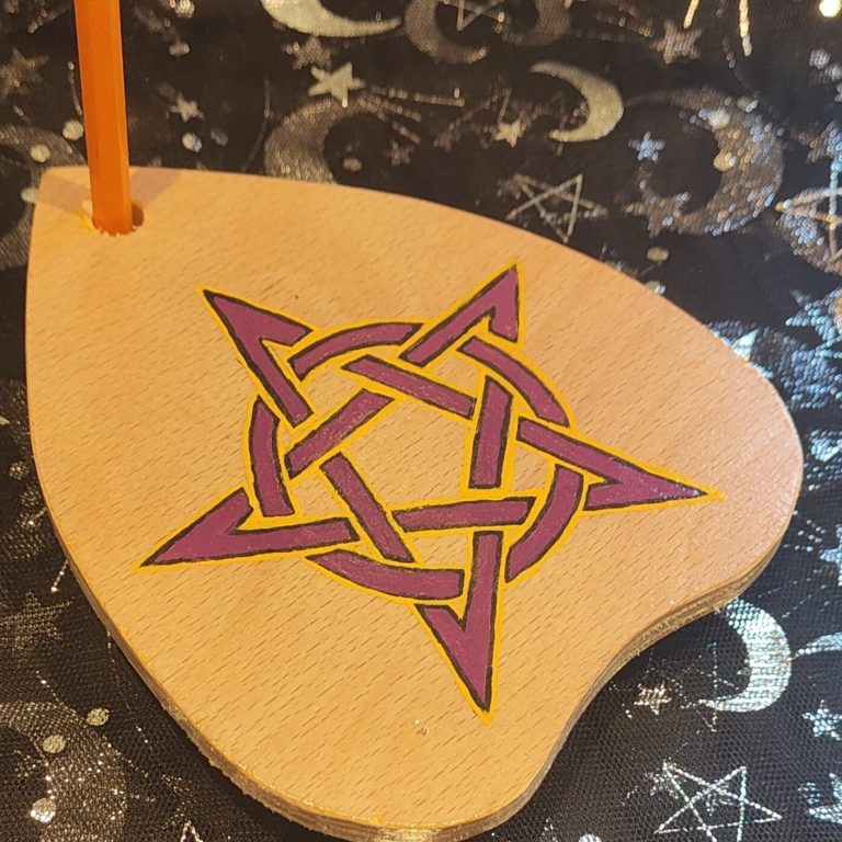 Turns out other people wanted something a bit more special. Since then I expanded the range with spirit writing planchettes, spirit dice, crystal grids and even candle holders and coasters.